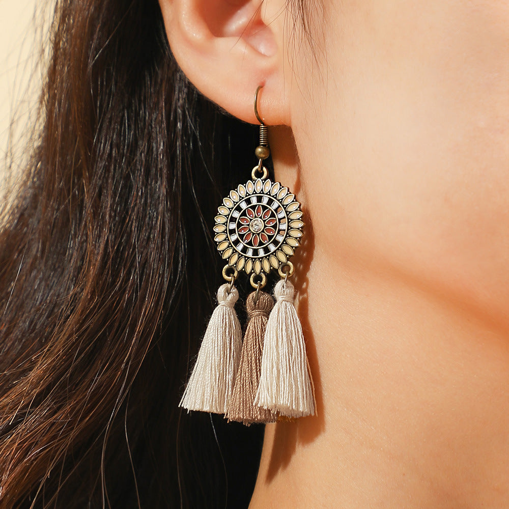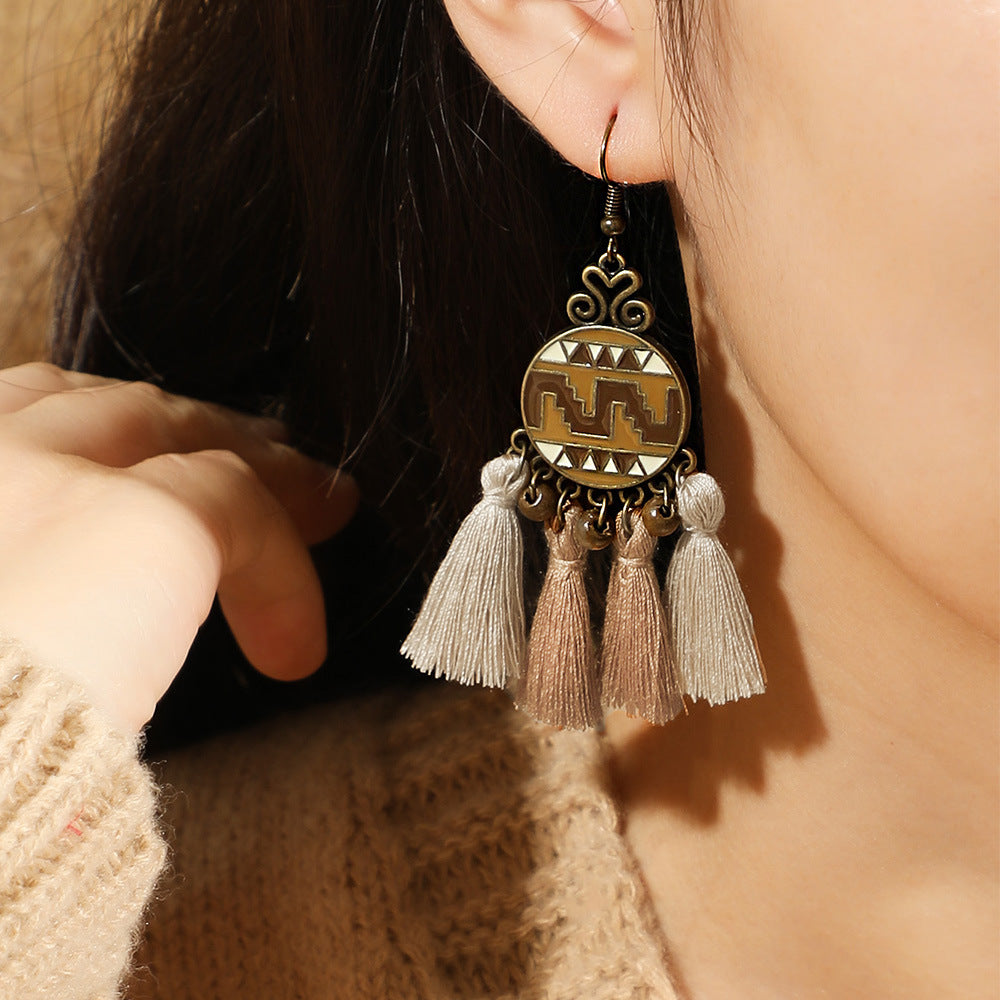 Boho-chic Vintage dřevěný vrstvený střapcový náhrdelník s náušnicemi 175